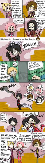Anyhoo! I read somewhere that the fourth season of "Code: Lyoko" is going to be 30 episodes long, so I was inspired to draw randomness. This is just a random doodle of the most random ending to "Code: Lyoko" I could think of. (Added a dash of William/Yumi at the ending just for fun.)