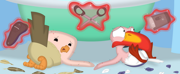 He's a silly feathered guy who shows the wrong way to use human objects to Ariel.