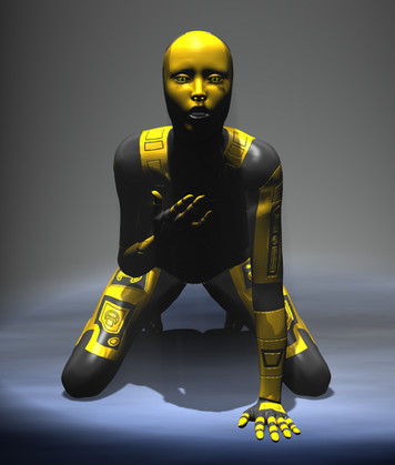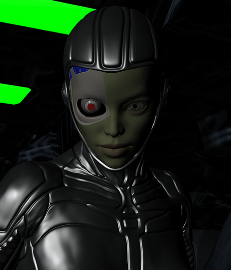 Trying to play this as cool as possible, he does not turn around to the voice behind him. He does not look suspicious, but he feels he is being scanned by this robot (even though he knows he is not), making his 'virtual' heart jump.