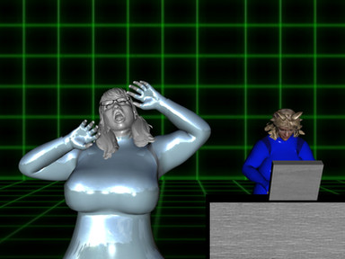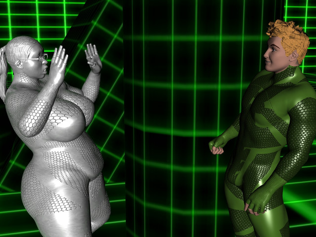 "Ok, that makes sense I guess," Makayla ponders, "But what happened to me?" She can see that her "body" is nothing more than some strange contour bit map. Her senses are dulled somewhat, but she has never been able to move so freely either. It is like there are no hindrances on her virtual body now.