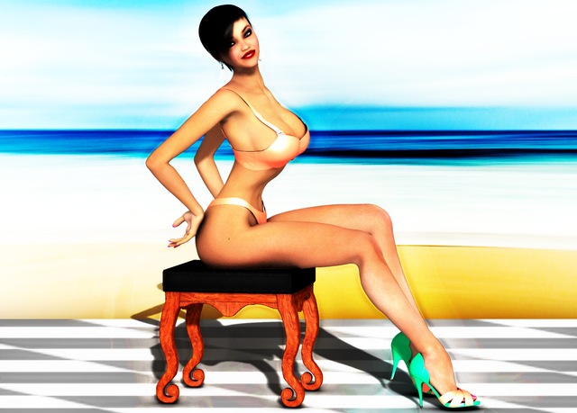 Madeline, hat, bikini, fascinating chair. What more do you need?——————