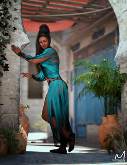 #3drender #bike #latina #oldvillage #oldwall #shadows #skit #updo #madelinestjames #lingeriemodel #outdoorportrait #affinityphoto #dazstudioiray