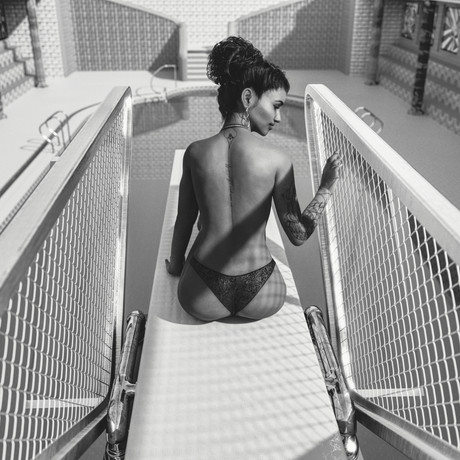 #latina #pool #madelinestjames #bikinigirl #bikiniswimsuit #blackandwhite #glamourportrait #monochrome