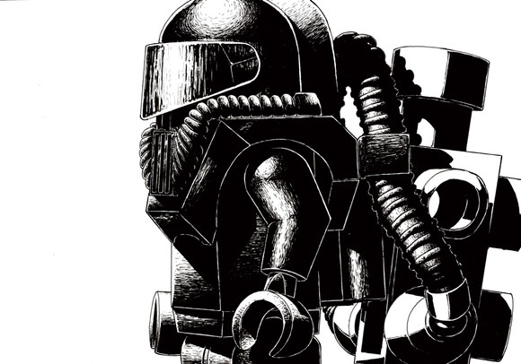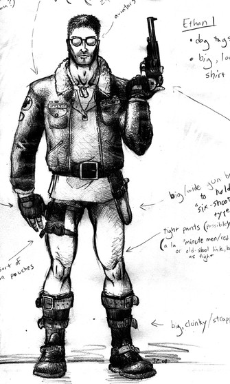 it started out as a rough pencil sketch like 6-8 years ago-ish, and it sat around as such for a few years, then i saw it in my sketch book, thought it was pretty bad ass for a sketch and got to work making it a finished piece. that included transferring it to bristol board, inking the outlines, then doing all the rendering. that part of it probly took maybe like 10 hrs or something of actual working on it, tho it was spread across a few weeks time