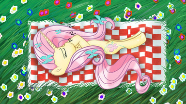 A request: Flutteshy sleeping in a white t-shirt.Related content