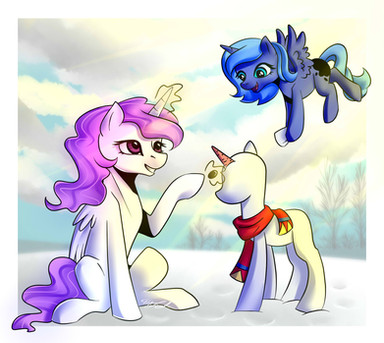 First thing that came to my mind... Ana: "Do you wanna build a snowman? Come on let's go and play...."(frozen reference) you did a good job tho it's so cute!