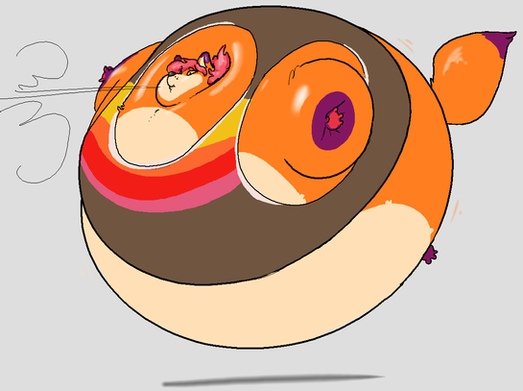 A fox girl OC that belongs to ballooned as a floating helpless ball.Twitter: Poweredrooby