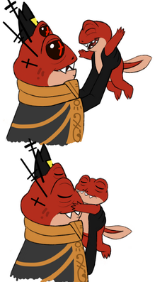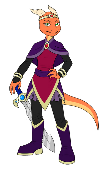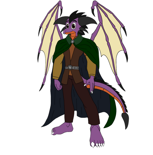 Looks like I forgot to colour his Torvinian Grech Bird, Falcon. She's grey, her wings and tail. . . thing are white and her horns and beak are black. Not much to say about her, but she's like Diablo to Maleficent, or the falcon to Shan Yu. That sort of thing. Not her actual size, she's small enough to perch on his shoulder without trouble.