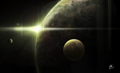 A sunrise on Ganymede, the largest moon of Jupiter.Hit the download button for fullview. dA is still withholding the fullview option (argh...).