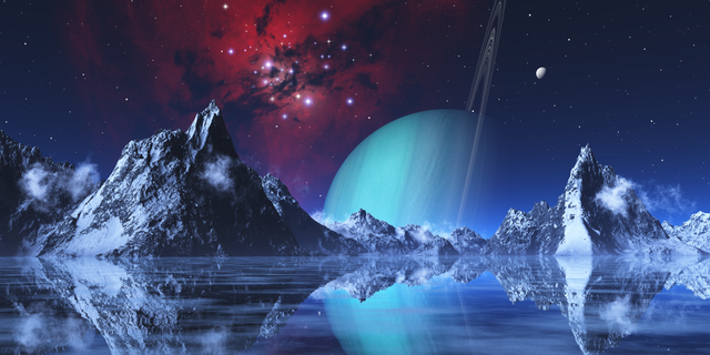 Thaw. On a distant planet, in an extremely cold part of the universe, a star that has just succeded it's dwarf stage and gone to the red-giant stage will melt the ice shelf on a frozen planet. It has already completely heated the permafrost on a neighboring planet, and water is visible on the entire surface, along with dirt that has not been seen in an eon. Soon, the entire planet will be like it's brother, and the ice will be gone.------------------------------------------------