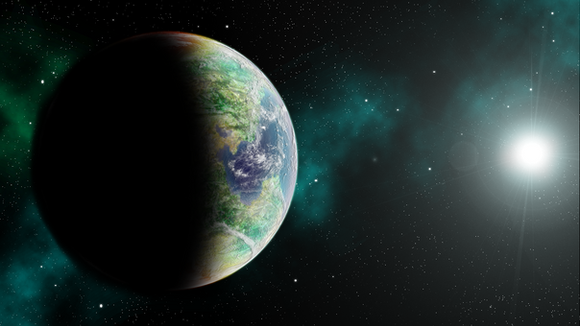 At first I thought the background was meant to be a nebula, but I can also imagine it a planet.