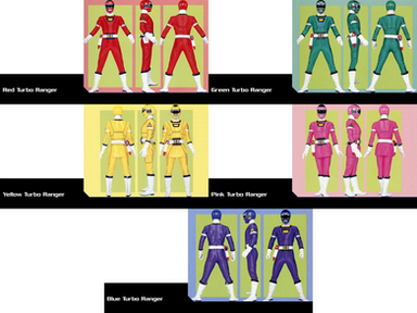 Now believe it or not, this does actually carry over from Zeo. This just shows what happened when the rangers gave their powers up to the newcomers, forming the new Turbo Team. So...