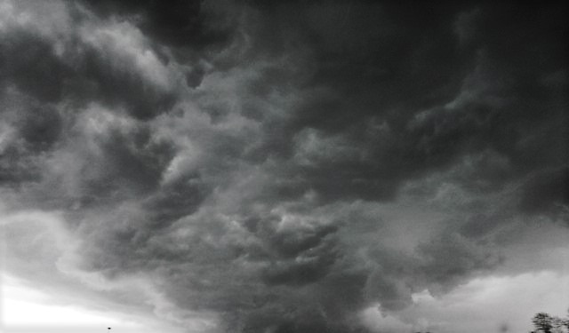 Taken many years ago with a 640x480 CHEAP digicam, a cold front clashed with a warm front and got this crazy shot right above me. not much was done to make the picture look like this, though the light sensor in the camera made it look this way....not bad eh