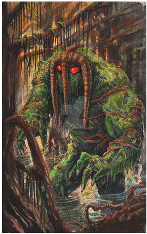#monster #fanart #horror #traditionalart #creature #marvelcomics #acrylicpainting #colouredpencils #manthing #markers #marveluniverse #watercolorpainting