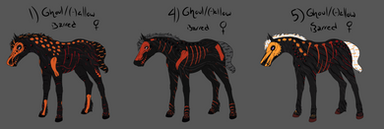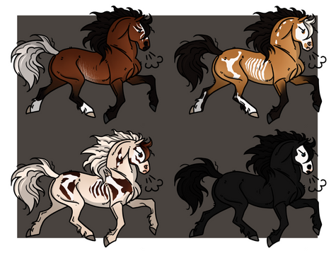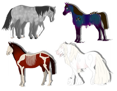 Outline of horse still visible. Skeleton under may be of any color though generally goes with the tone of the horse but not required.