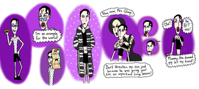Yes, also, in my version, Augustus gets his ticket by taking the winning Wonka bar from someone else, even though he's got plenty of his own, just because it's there. I would want all four of the "bad" kids to get their tickets unfairly, though I'm still trying to work out how to do that with Mike and Violet- my Mike isn't a hacker. Also in my version, Augustus gets his stomach squeezed and stretched out in the pipe (and probably more in the Chocolate Room, who knows what happened there...) which is the only way I could think of to logically make him appear "thin" as he exited.