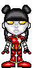 Clothing design: Dark blueish-gray with white outlining. Glove sleeves and boots consist of bright yellow, orange and apple red. Corset, glove and boots have two holes on each side and consist of three, bright yellow, orange and apple red wires. Belt colour is white with handles attaching to her boots.