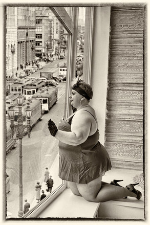 Cute pose, like a classical beauty. Again a nice contrast beween a warm an lovely woman and cold clean architecture in the background an beneath her.
