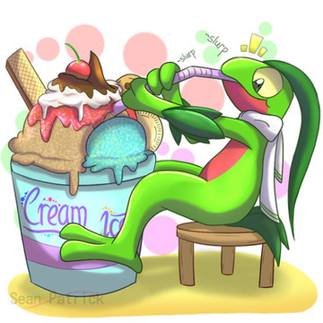 This Grovyle couldn't wait another minute, the cake is too tempting X3 cute pic. ^^