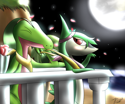 Hey guys! Its been a while since i posted a drawing xD so this is a commission for when luke got hurt from a battle, her grovyle OC cared and took him outside for a little walk, and they decided to hangout together, then gave lukey a sweet kiss ^w^I hope you guys like it!~~