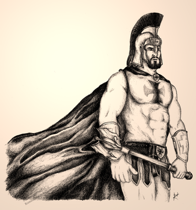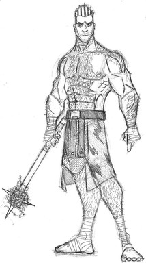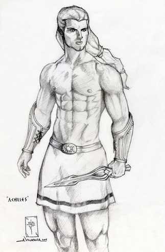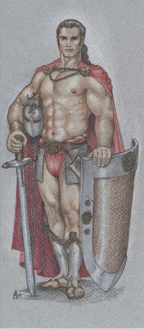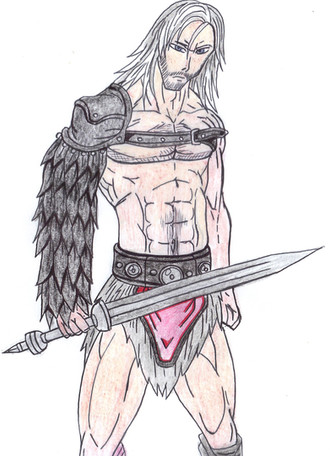 Ashe... in his "Olympus wear"... usually he is here on Earth and in shorts and a t-shirt. This was before he got in a fight with a were-lion and lost. (Though lost may not be the right word... he was turned but he lived... the lycanthrope that bit him end up with a silver blade in the gut....)Related content