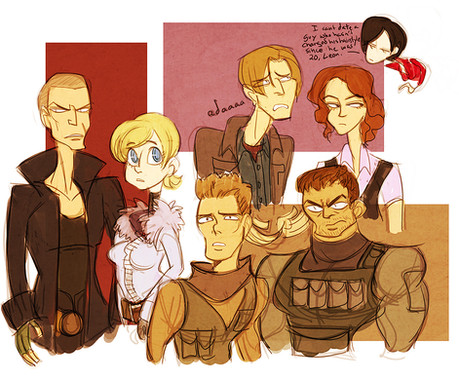 They all look amazing and are really well drawn, but if I were to pick one, I'd say Leon, but trust me when I say it's a close call. All of them are really detailed and look 100% accurate. Wesker and Krauser have this badass appeal to them, Chris shows his seriousness and whenever he's serious, I always think of how he's probably hurt inside from losing his friends and trying to take vengence on Umbrella (Really, I see the main story of RE in the eyes of Chris, due to Barry could've just helped Wesker secretly and left, it show Wesker's reasons to despise Chris, and it shows what became of Rebecca), Steve immediately reminds me of his personality in Darkside Chronicles, which is awesome, Alfred is...Alfred (XD), Claire has that all knowing look, though she usually isn't cocky about it (Oh no, she's getting the Leon syndrome! XD), and Alexia just has that malicious look on her face. Idk why I prefer Leon, maybe it's cause it's kinda a natural look. He's not expressing a certain, obvious emotion, he's just looking around. On top of which, I think the drawing of him just appeals to me more than the others, maybe it's the face or the expert coloring on him. Like I said, all of them are really done well, but Leon takes the cake. Sorry, you've listened to me ramble long enough XDDD Awesome picture, Al!