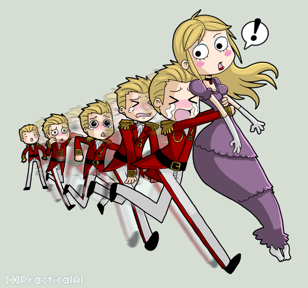 I love the fact that Alfred starts crying and shrieking when he throws a temper tantrum and Alexia just gets really angry XD