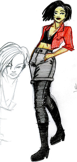 I did this for the Pulp Faction Forum thread where you have to draw a pin up of a cartoon character, and I decided to draw my Favourite jaded and cynical artist Jane, from Daria.Artline felt tip pen and coloured in photoshop.