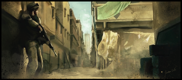 Oh wow, I thought it was a photo from the thumbnail I was looking at O_O I love the lighting on this one, the way the holes in the roof filter out those rays of light. I also like the little BAR sign out in the background for some reason XD Just randomly