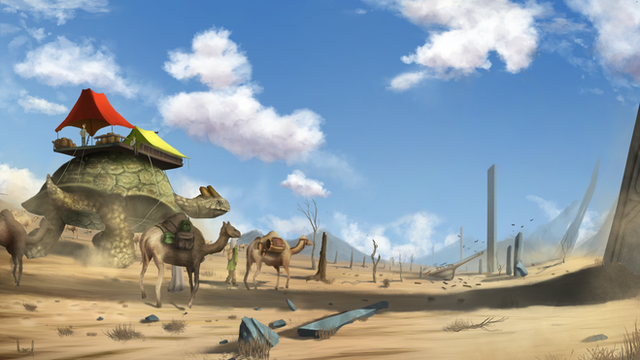 Great work, and a fantastic concept. I'd love to read a story set in that kind of a world. Reminds me of a surrealistic Dark Tower thing.