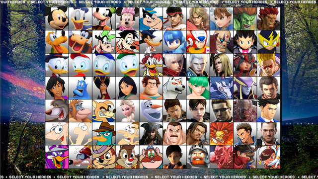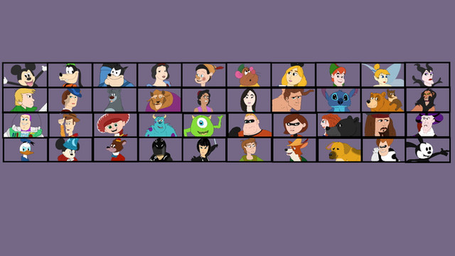 This is just a silly thing I was doing in my spare time and has no bearing on my current Smash-related project. Basically I was toying with the idea of what a Disney Smash clone would look like, and came up with a concept of the fighters being divided up into groups of eight based on the different branches of the "Disney" brand. (Originally there was eight group, but only one group was way too limiting to the core Disney Animated Canon, so that was divided into three groups by era).So, going by vertical columns, we have 1) Mickey Mouse & Friends, 2) Pre-Rennaissance Disney Animation (Snow White to Oliver & Company), 3) Rennaissance and Post-Rennaissance (Little Mermaid to Bolt), 4) Modern Era (Princess and the Frog to today), 5) Pixar, 6) Star Wars, 7) Marvel Cinematic Universe, 8) Disney TV, 9) 20th Century Fox, 10) Other (Basically characters that don't quite fit into any other group).