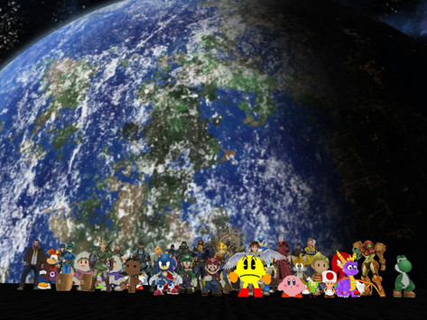 This is, at least, a rough estimate of what I imagine the roster select screen would look like on a game like this. You start with a vast cosmos map, with selections available for video games, movies, books, mythology, real life, and so on. You would click on one, and it would zoom in. For instance, you'd click video games, and it would zoom in, showing you selections for all the various video game companies: Nintendo, Sega, Capcom, and so on. You would click on Nintendo, and it would get even bigger, showing you a roster of all of Nintendo's major franchises. This scene here is likely what you'd see when you clicked on the Mario selection there, zooming in on a map of the Mario world as seen in Mario Odyssey, with the core Mario roster right up front, but the other rosters floating nearby. If you clicked on the core Mario roster, it would then become a pretty standard character select screen, and you would be able to navigate to those others by zooming back out or by hitting the select button for that specific roster.Anyway, now we're done. Moving ahead into the future, here are my plans. I'm going to take a week (I was going to take two weeks, but then we had our family situation last month, and it doesn't feel right doing that after already taking a week off, so I'm just going to do one week and split the difference), and then I'll start back up on Monday, April 4th with the Legend of Zelda series, going through the games and evaluating characters and so on like I started doing. However long that will take me, I don't know, but it'll definitely go by much faster than the Mario series did. When I have finished, and posted all the character cards, stage cards, rosters, and so on like I've done with this series, I will return to the Mario franchise, go over every bit of media that has come out since (Mario + Rabbids, the new Strikers game, the Chris Pratt movie) and update the rosters accordingly as needed. I will move on to Metroid after that point, returning once finished to go over any Mario or Zelda material that will have come out in that time, and so on and so forth.