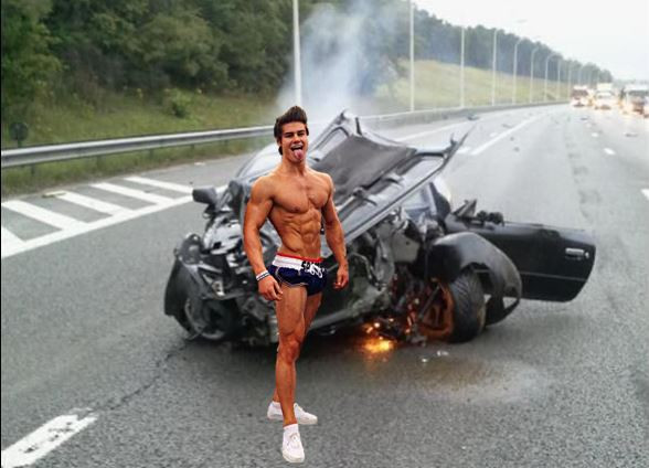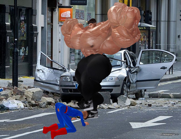 Wow! This image is totally amazing! Excellent work! My heart is also going pitter-patter pitter-patter! A superman in briefs saving the guy trapped after a car accident! Perfect! Β Β Β Β