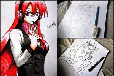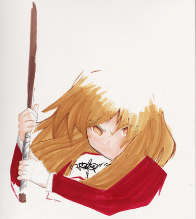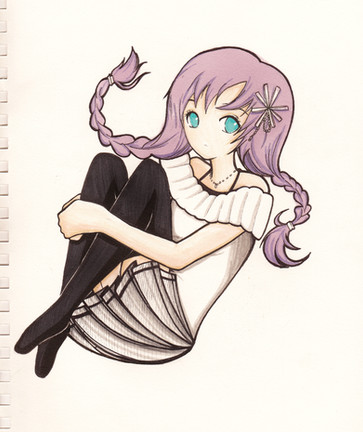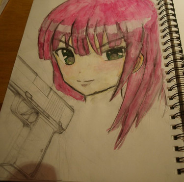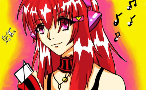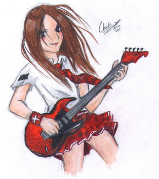 Very nice work. I loved this anime for the music more than the storyline. This picture reminds me of how much the show focused on their music rather than the story. This looked pretty difficult to draw, but maybe its because I'm not much of an artist. Good job coloring the hair and shading with lines. Looking forward to seeing more of your hybrid of anime & graffiti style.