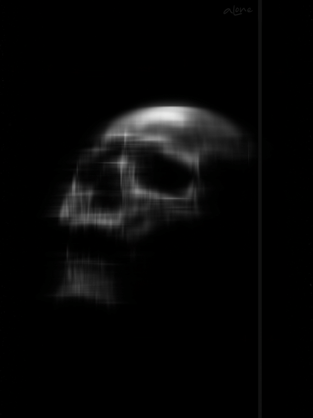Interesting piece. It doesn't really look like a skull to me. I mean, the concept it there, but the big flaring lines up and down in the middle distort the image to much. It makes it seem way to long and it loses it's roundness and seems to flat for my liking.