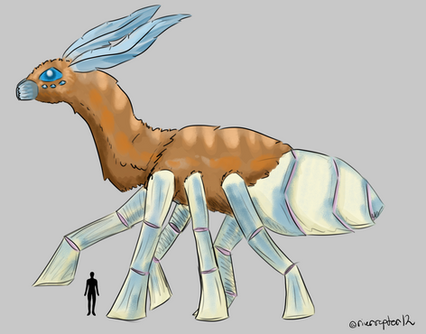 Sea Armadillo: This armadillo has evolved into an otter like animal that has become omnivorous and now searches for clams and kelp to eat. It has also evolved an amphibious like tail for propulsion.