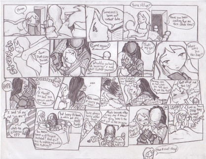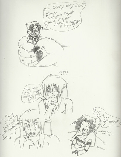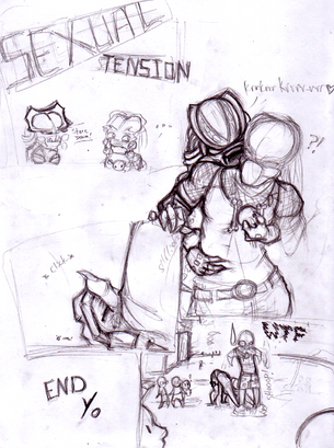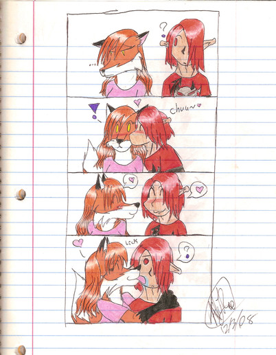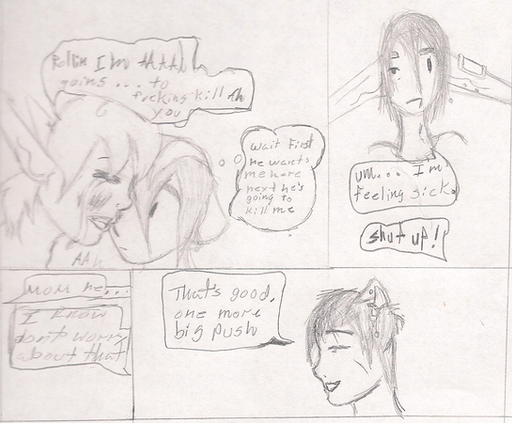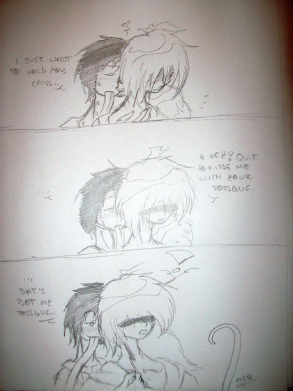 First Panel: The lovely miss. Lie and my flirtatiously lazy Vertigo (it was a toss up between her and my other friend’s chara .. you know who you are … but I wasn’t sure if it’d get me in trouble for some ungodly reason.. that and… I love to draw Lie … she’s just so sexy cute .. not that my other friend’s isn’t.. meeeoow lawl I’m such a pervert.