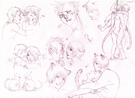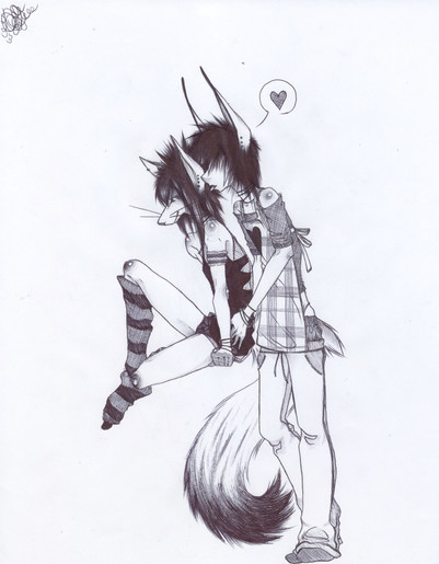 Xenok: owo!! *falls over from lavvy's tackle glomp since he's wobbly-uneven most the time anyways* Eeeiiiiar l3 *bumps his nose under her chin, laying in silly twisty kitty pose like he couldn't decided if he'd land on his belly or back*
