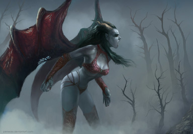 There used to be a cartoon called Gargoyles and one of the villains was a female gargoyle named Desdimona, who was also a scantilly clad woman with bat-like wings. Your's is WAY hotter though lol.