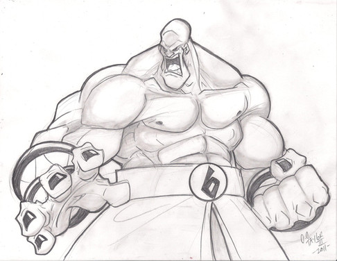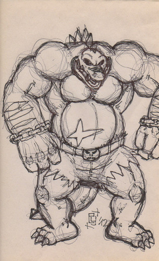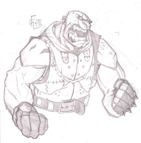 My own character (not DC or Marvel)....... Not really much of a character , just doodling and a big goon with a gunbelt came out.