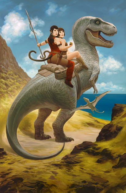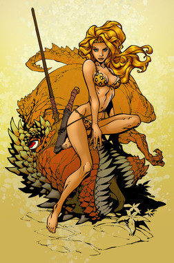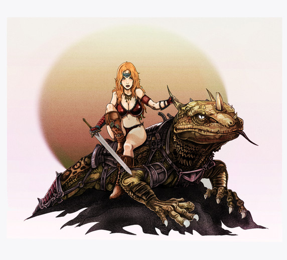 The girl looks hot and that lizard is just plain killer. Love the colors, that sky is just cool. Severely Awesome, Bro!