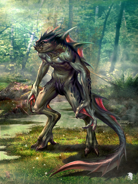 Fantasy character design of a creature. The creature stalks the landsape and uses his rocky/spikey back to camouflage gimself among the rocks.PR