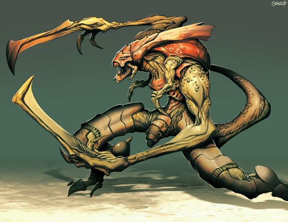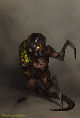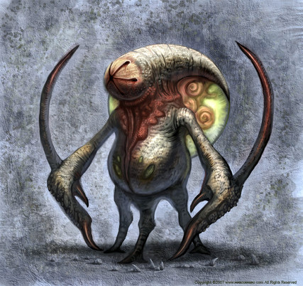Um... kindof reminds me of alien, the expresion of the head.. :] (I like alien)