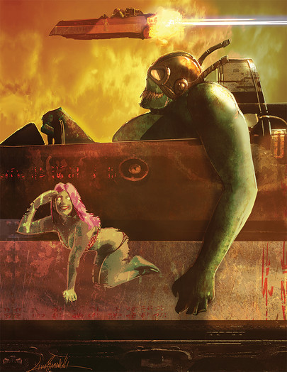 this is a beautifully structured and coloured piece. and it's always interesting to see gremlins depicted as they were meant to be, destroyin the technology.