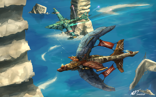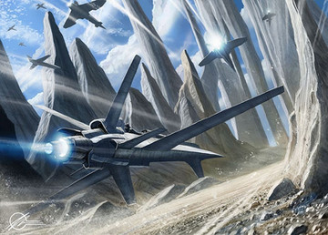 Excellent. Reminds me of how Frazetta would blend starfighters into these mammoth natural landscapes.