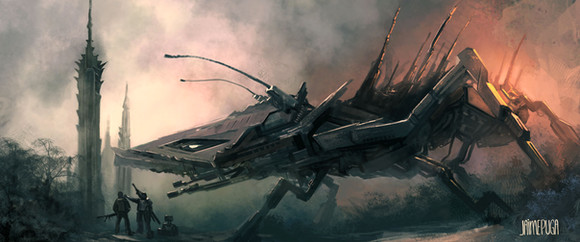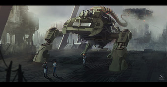 very cool robots. I like the whole feel and look of the piece. very nice. this calls for a fave.
