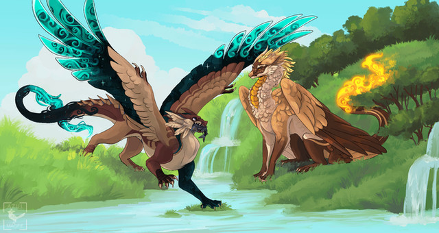 #fantasy #forest #furry #griffin #illustration #oc #painting #waterfall #wolf #wolfcharacter #griffincharacter #art #originalcharacter #paintingdigital