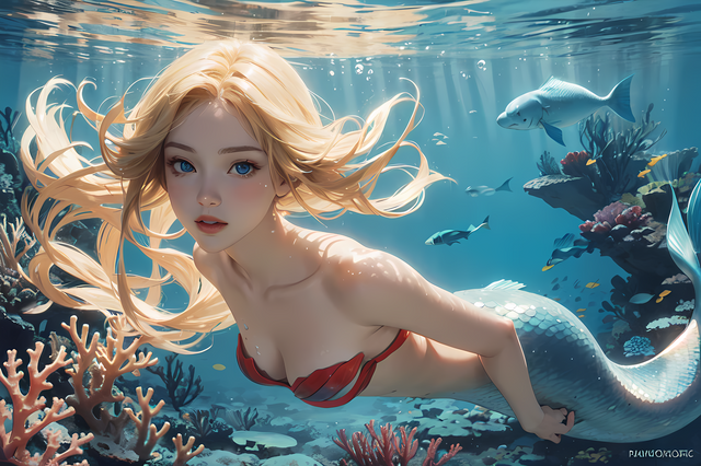 #ai #animegirl #beauty #cute #digitalart #elf #elfears #elffemale #elfgirl #elvengirl #elves #fins #mermaid #ocean #pointyears #pretty #semirealistic #underwater #waifu #aiassisted #prelfgi