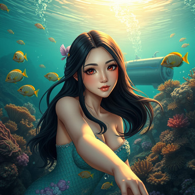 #digitalart #animegirl #ai #beauty #cute #elf #elfears #elffemale #elfgirl #elvengirl #elves #fins #mermaid #ocean #pointyears #pretty #semirealistic #underwater #waifu #aiassisted #prelfgi