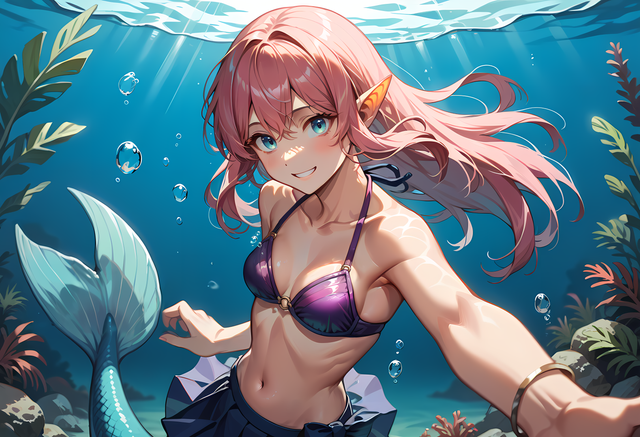 #fanart #anime #animegirl #digitalart #ai #beauty #cute #elf #elfears #elffemale #elfgirl #elvengirl #elves #fins #mermaid #ocean #pointyears #pretty #semirealistic #underwater #waifu #aiassisted #prelfgi